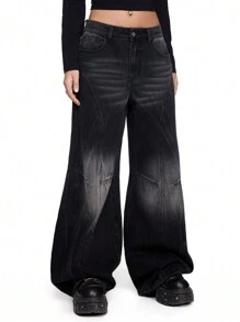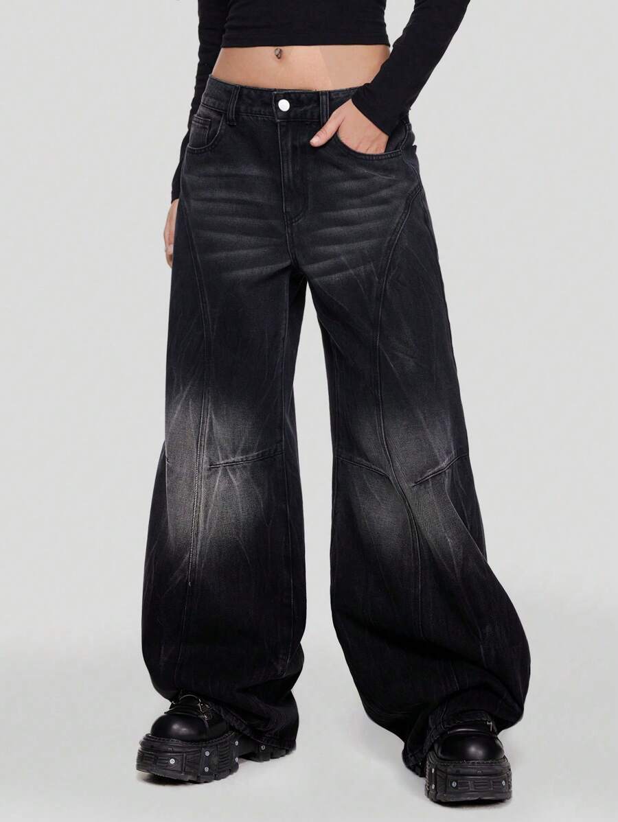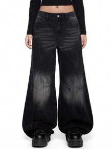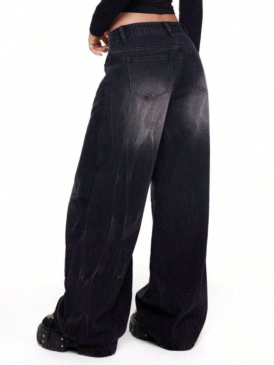 Grunge Punk Jean large décontracté à taille haute et lavage délavé de style rétro streetwear pour femme