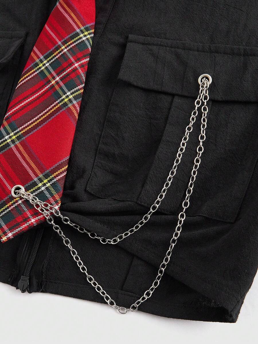 Grunge Punk Chemise courte pour femme style rock et punk, pour un port quotidien, vient avec une cravate à carreaux rouges