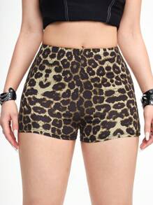 Grunge Punk Mini-short stretch et moulant pour femme imprimé léopard sexy