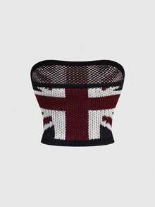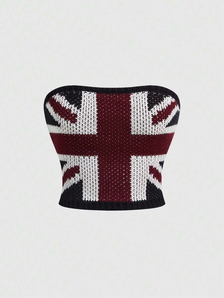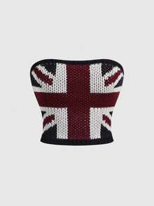 Grunge Punk Top bandeau tricoté rétro sexy avec motif Union Jack