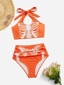 Ensemble de bikini à bretelles avec imprimé squelette, pour l'été à la plage