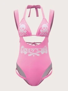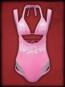 Grunge Punk Maillot de bain une pièce à motif tête de mort et guitare & Haut de bikini