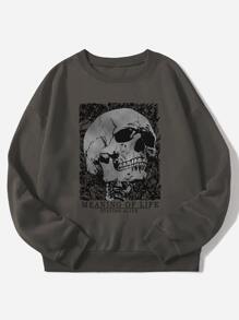 Grunge Punk Sweat-shirt à motif tête de mort et lettre