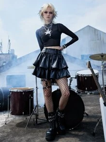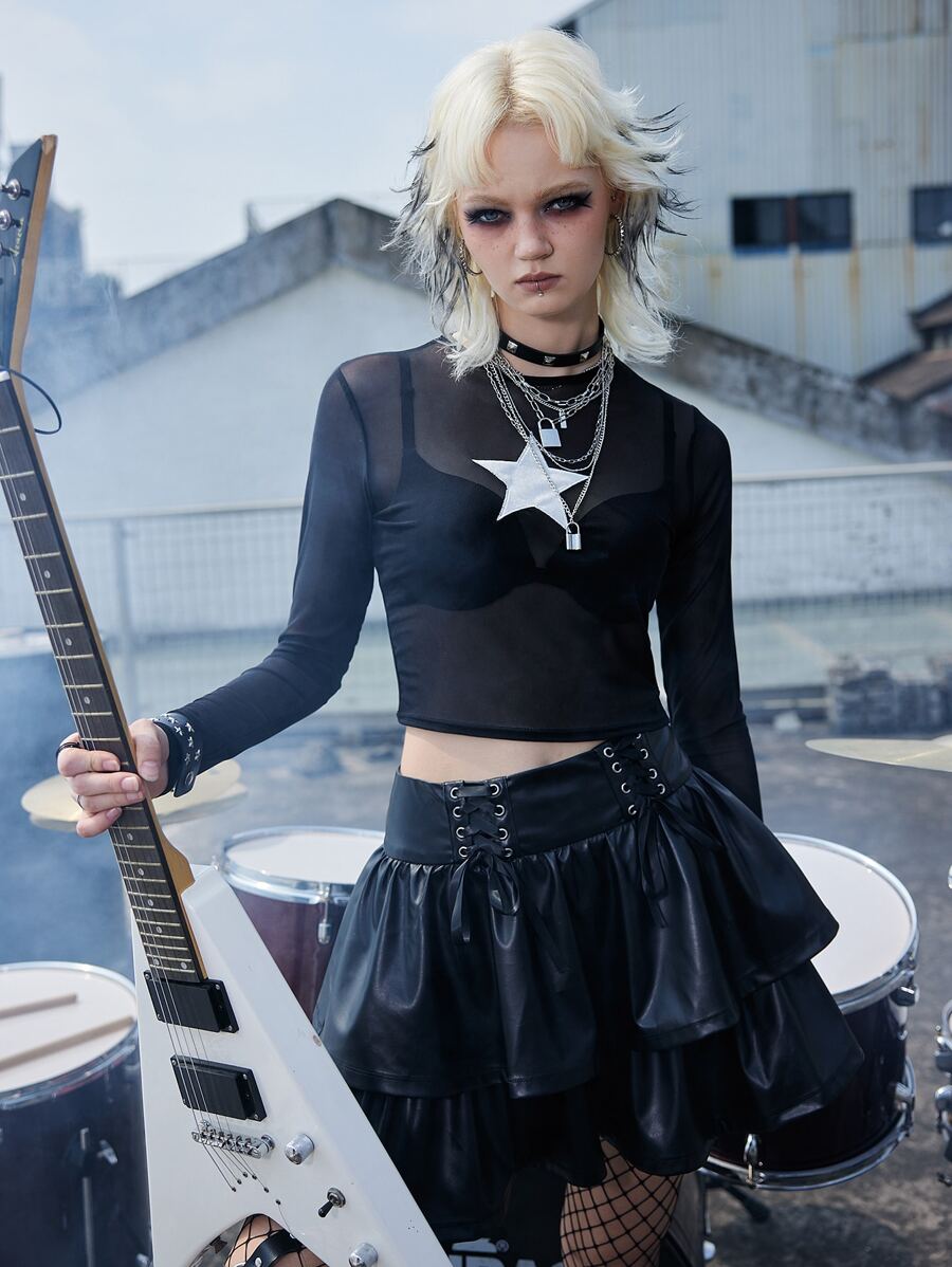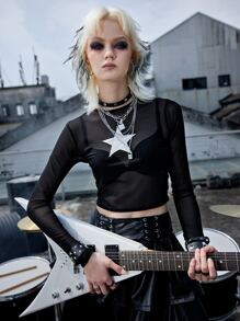 Grunge Punk Tops femme Broderie Transparent Sexy Géométrique