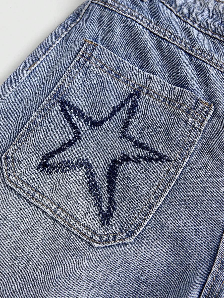 Grunge Punk Short En Jean Imprimé Étoile Déchiré