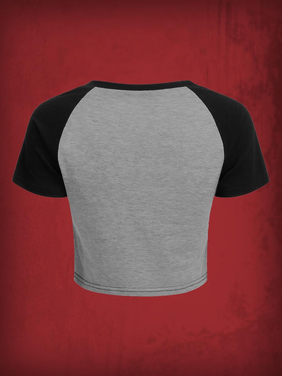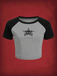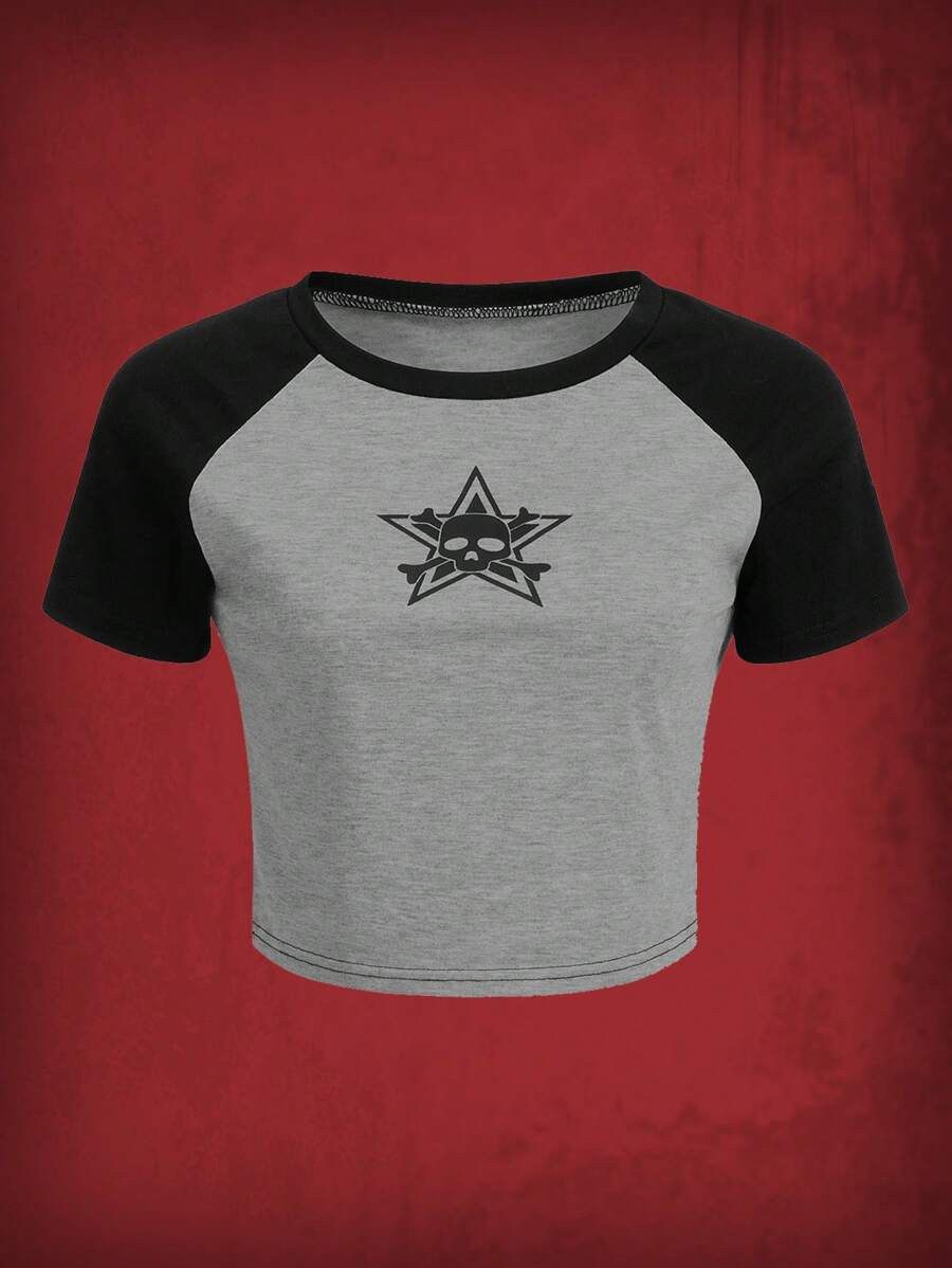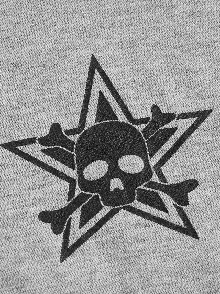 Grunge Punk T-shirt Étoile & Imprimé Tête De Mort Manches Raglan