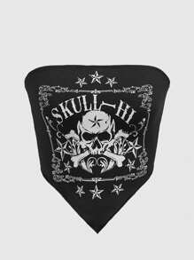 Grunge Punk Haut Tube Streetwear À Ourlet Bandana Imprimé Tête De Et Lettre