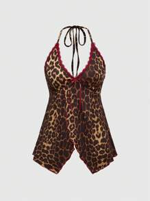 Grunge Punk Débardeur femme Y2K rétro à col en V avec patchwork en dentelle, ourlet asymétrique et imprimé léopard