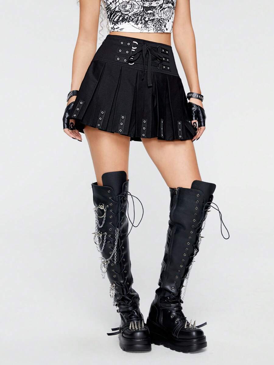 ROMWE Avant Jupe Plissée À Nœud À Œillets