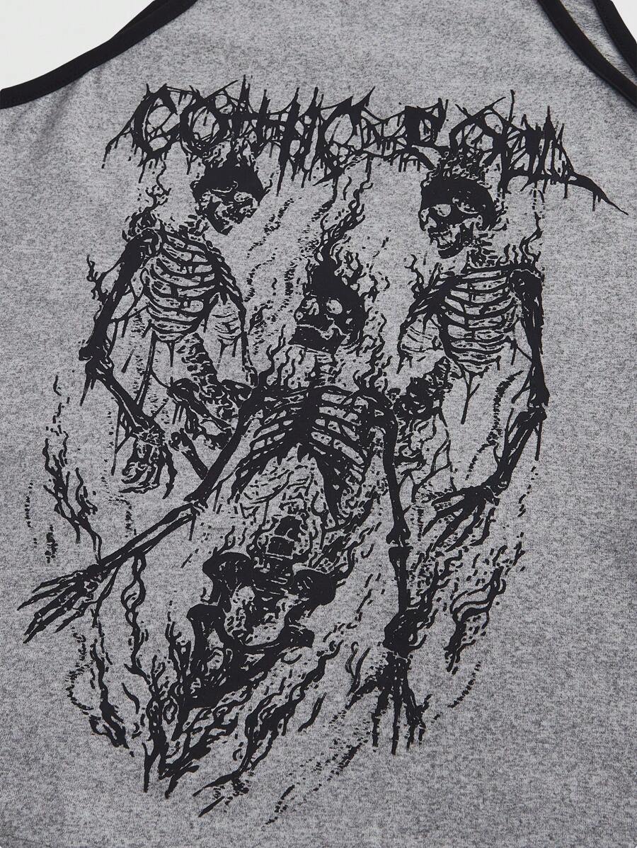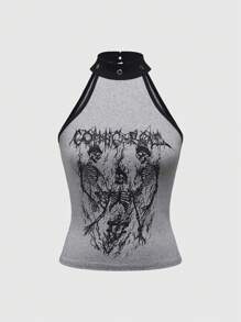 Grunge Punk Femmes Col roulé Sexy Style Punk Rock Contraste de Couleur Imprimé Crâne Sombre Débardeur Court