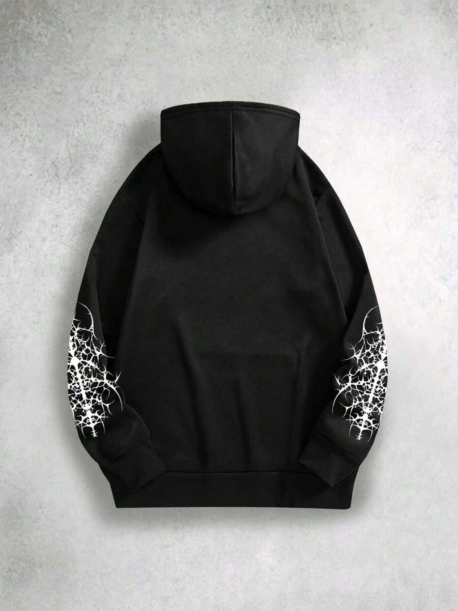 Grunge Punk sweat-shirt à capuche en polaire noire gothique avec imprimé épines pour femmes