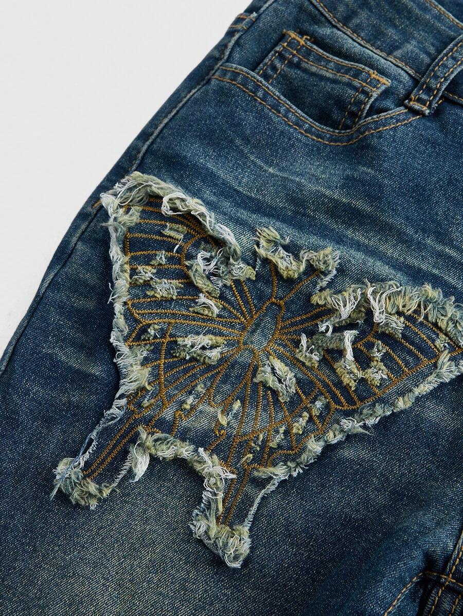 Grunge Punk Jeans Évasés En Denim Pour Femmes Avec Ornements De Conception De Papillon