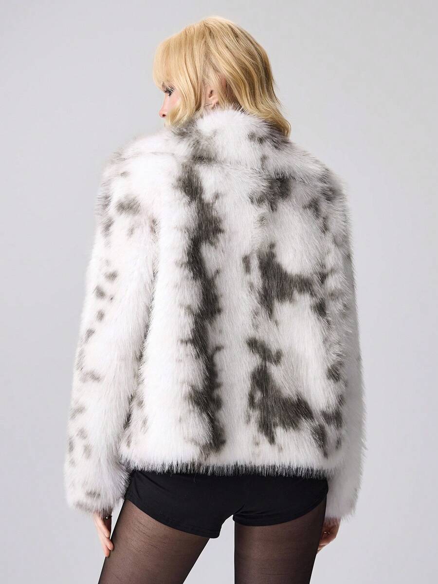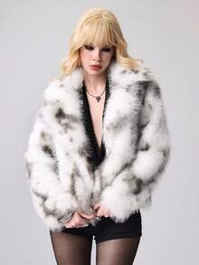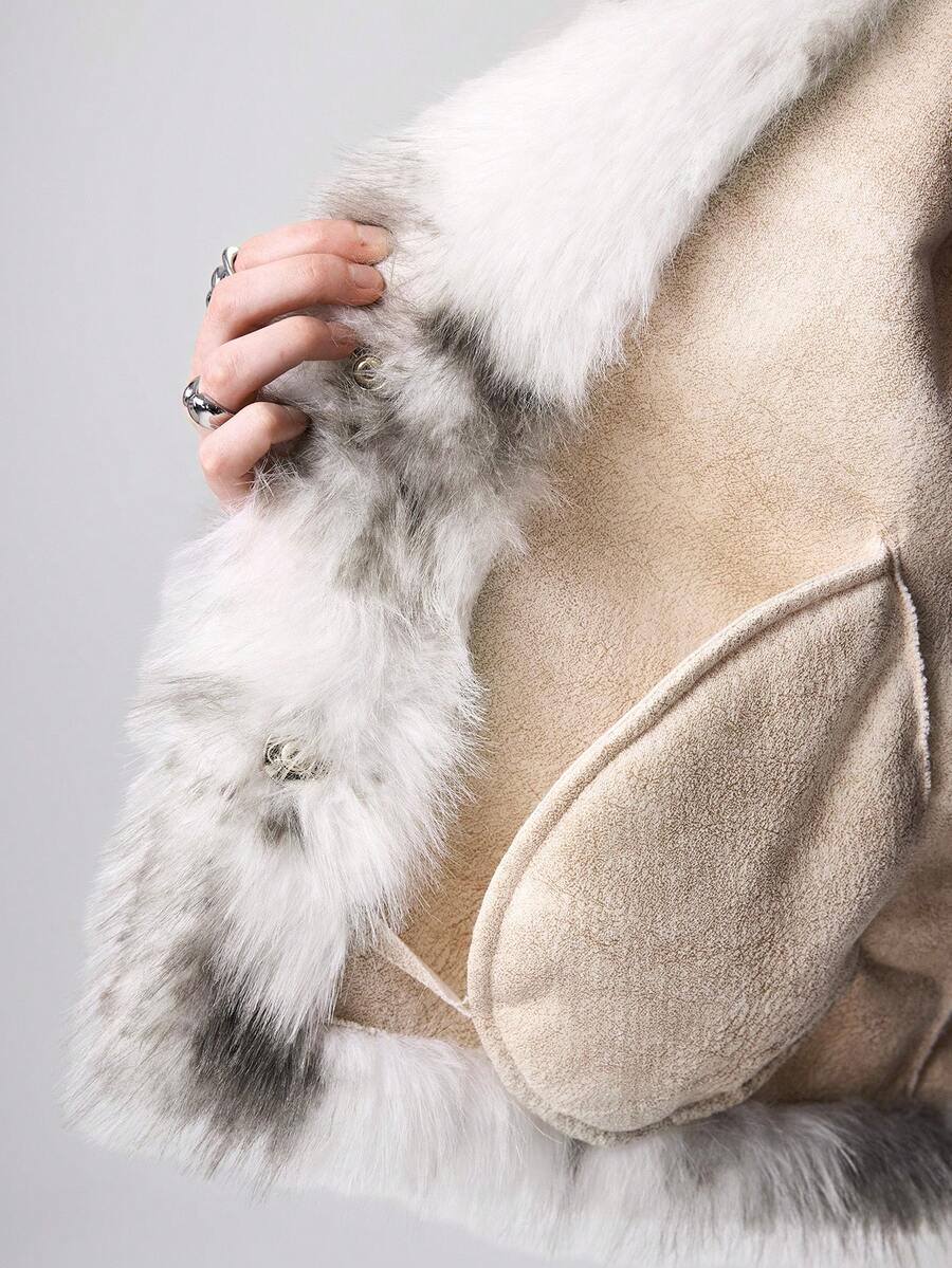 Grunge Punk Veste ample à manches longues en fausse fourrure à blocs de couleurs, hiver