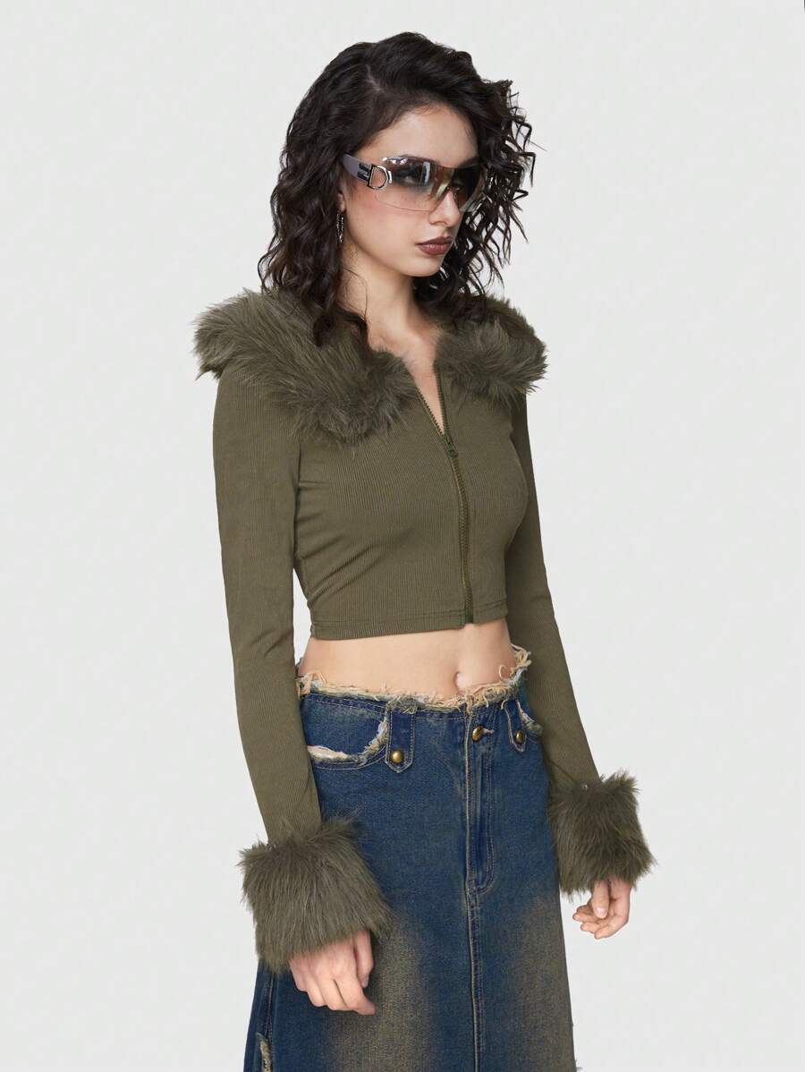 Grunge Punk T-shirt Court En Fourrure Pour Femmes