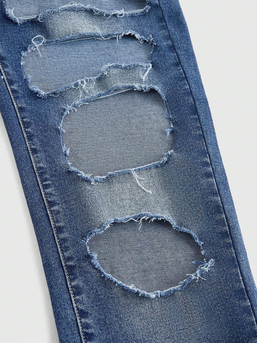 Grunge Punk Jeans skinny à la cheville pour femmes avec broderie croisée, poches et détails déchirés