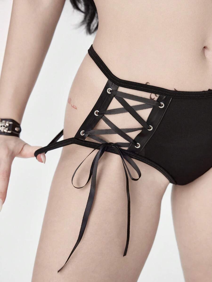 Grunge Punk Culottes triangulaires à œillets et lacets style punk sombre pour femmes