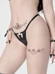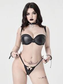 Grunge Punk Culottes tanga en PU à boucle métallique cœur sombre punk pour femmes