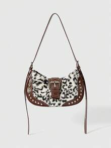 Grunge Punk Sac à épaule vintage à imprimé léopard mode patchwork pour femmes