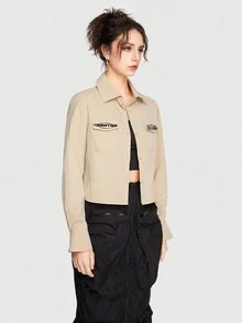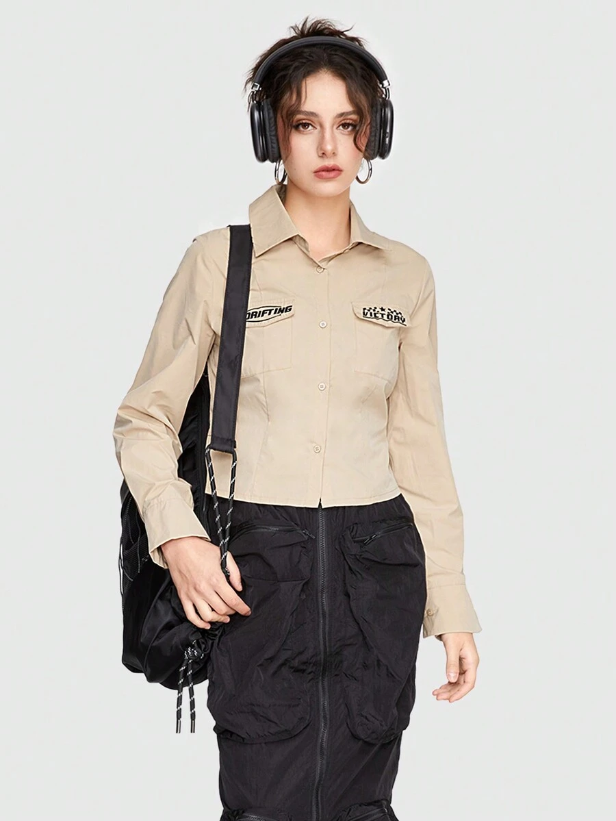 Grunge Punk Chemise À Manches Longues Avec Impression De Lettres Pour Femmes