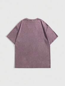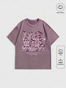 Grunge Punk T-shirt acide lavé aléatoire pour femmes avec lettres métalliques et motif floral rose