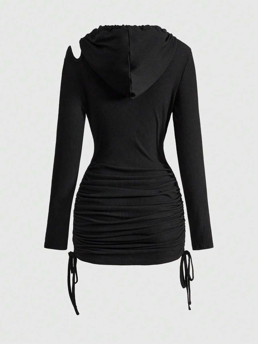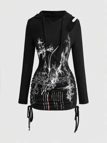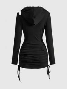 Grunge Punk Robe à capuche asymétrique avec découpes et fronces pour femmes, style punk