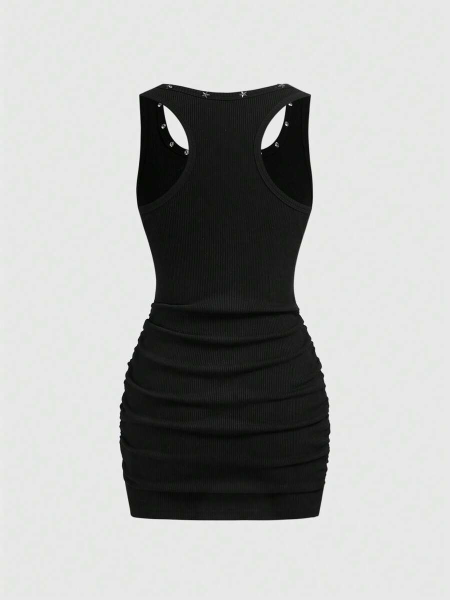 Grunge Punk Robe moulante mini à imprimé étoiles et rivets, style rétro baddie, streetwear unisexe et décontracté pour femmes