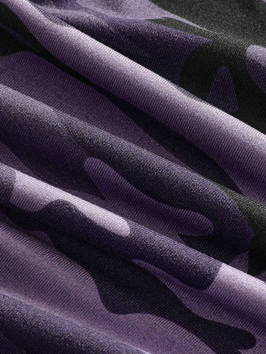 Grunge Punk Top court à encolure ras-du-cou, patchwork de camouflage et de dentelle rétro sexy avec strass, pour l'été
