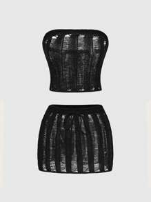 Grunge Punk Ensemble de 2 pièces comprenant une jupe bandeau court et sexy, et une jupe mini tricotée fine et ajourée pour femme