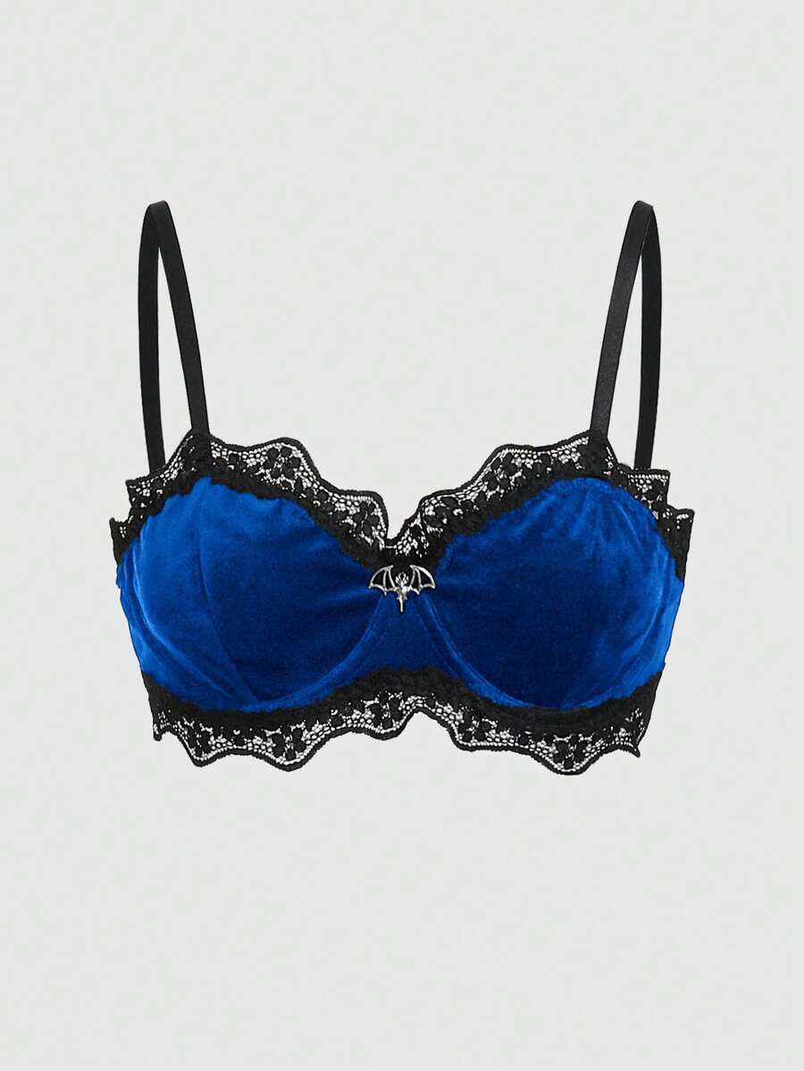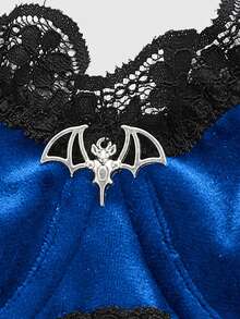 Grunge Punk Soutien-gorge brassière en acier, velours et dentelle avec pendentif chauve-souris pour femmes