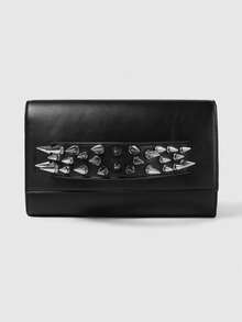Grunge Punk Sac pochette souple décoré de rivets, style Y2K Baddie. Sac à épaule/bandoulière polyvalent à la mode pour femmes, style sous-culture Goth, noir