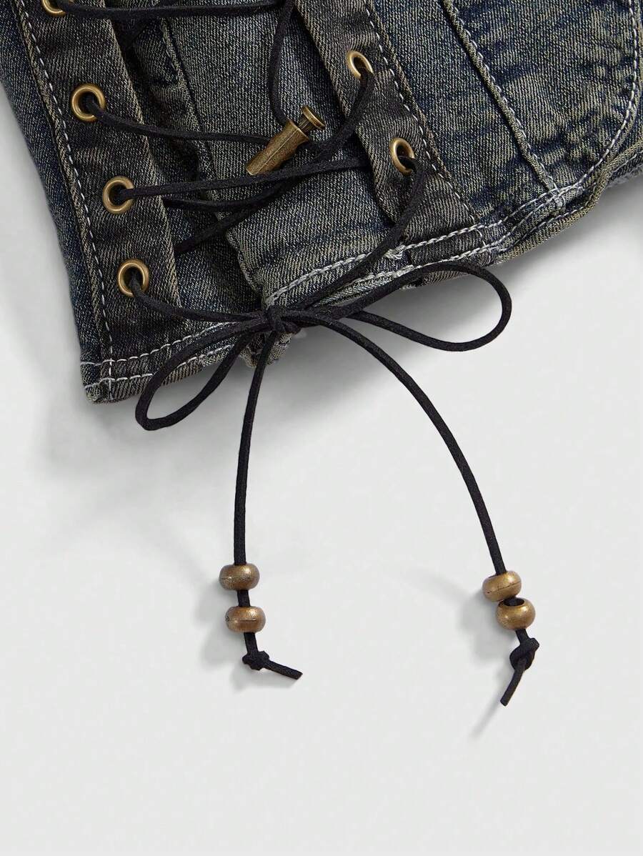 Grunge Punk Jupe mini moulante avec design de ceinture à nouer et poches, style Y2K, Kpop, rétro (avec culotte incluse)