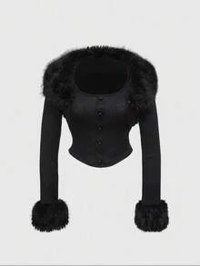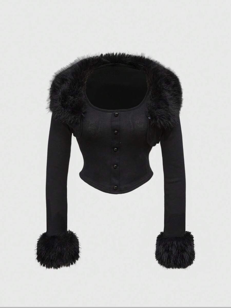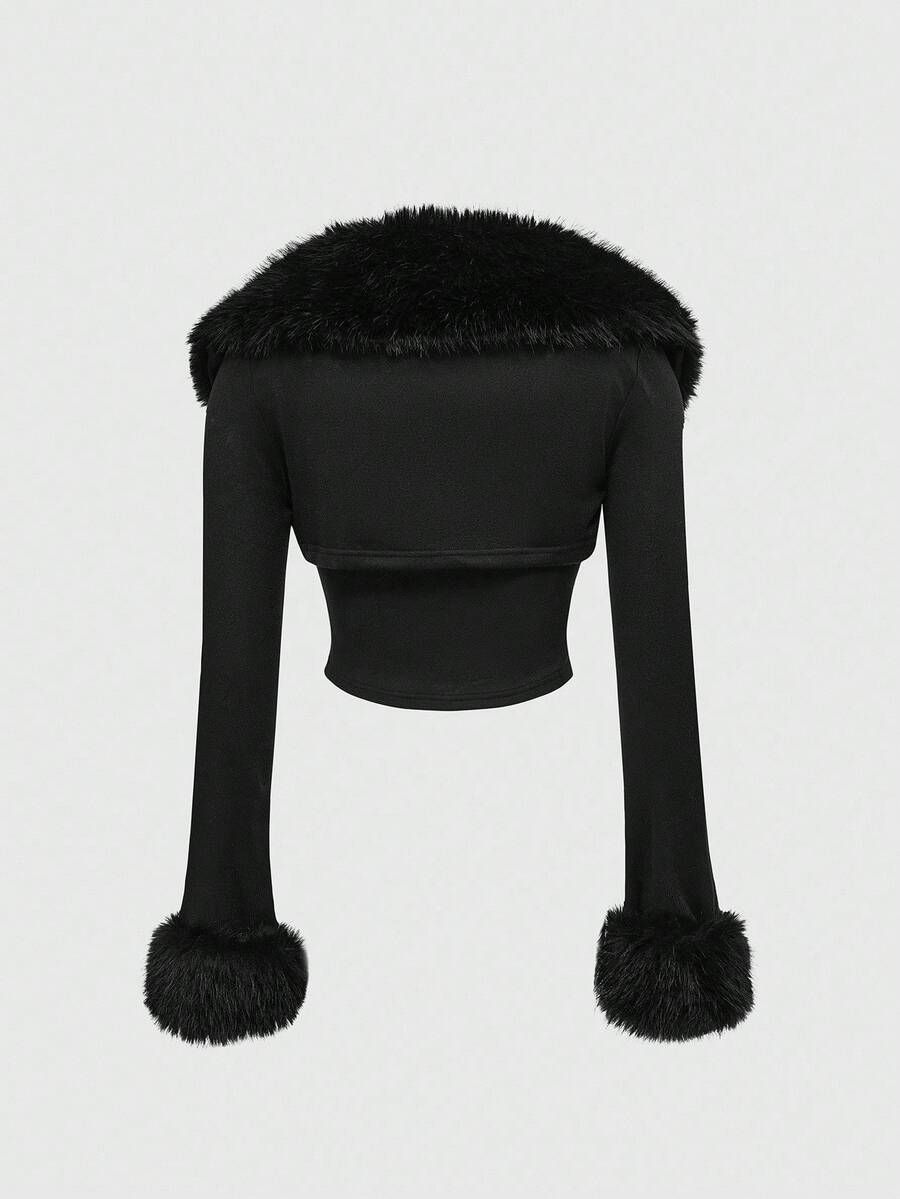Grunge Punk Ensemble 2 pièces pour soirée Y2K et sortie en boîte de nuit : Top court à col en fausse fourrure imprimé léopard patchwork + débardeur