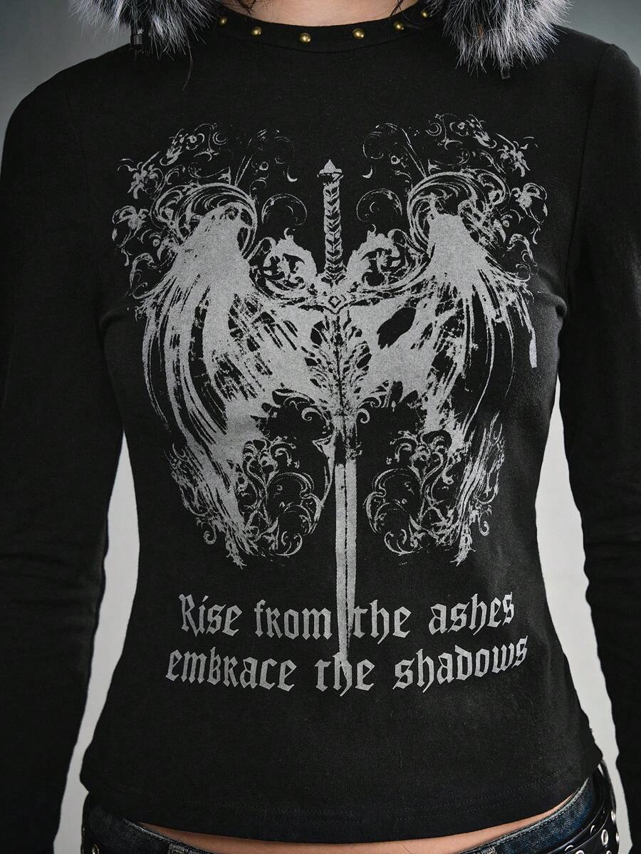 Grunge Punk T-shirt ajusté avec imprimé graphique de lettre d'aile de style punk Y2K