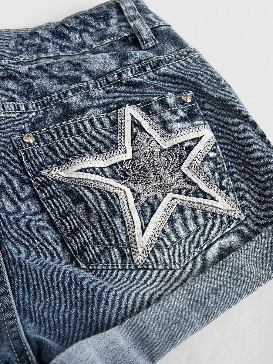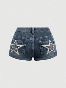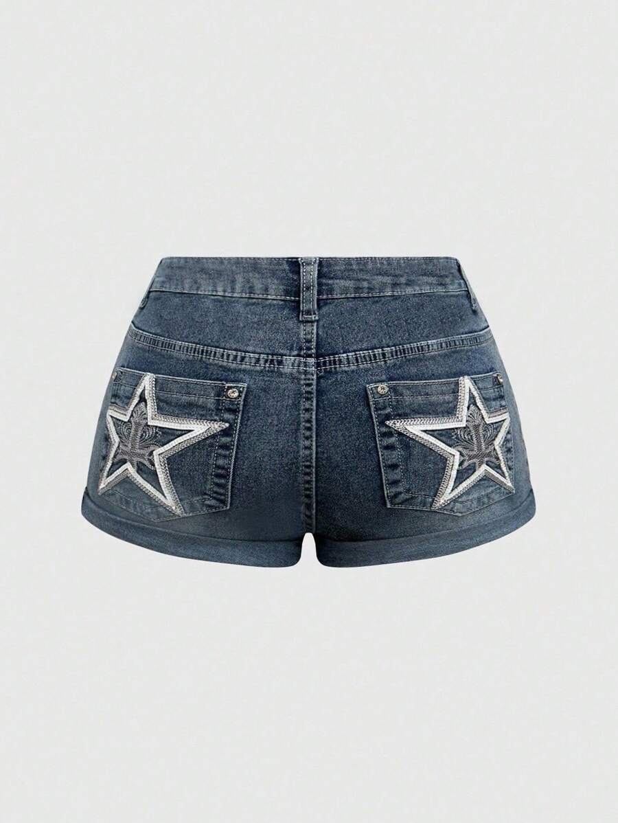 Grunge Punk Short en jean avec broderie d'étoiles rétro Y2K sur le dos