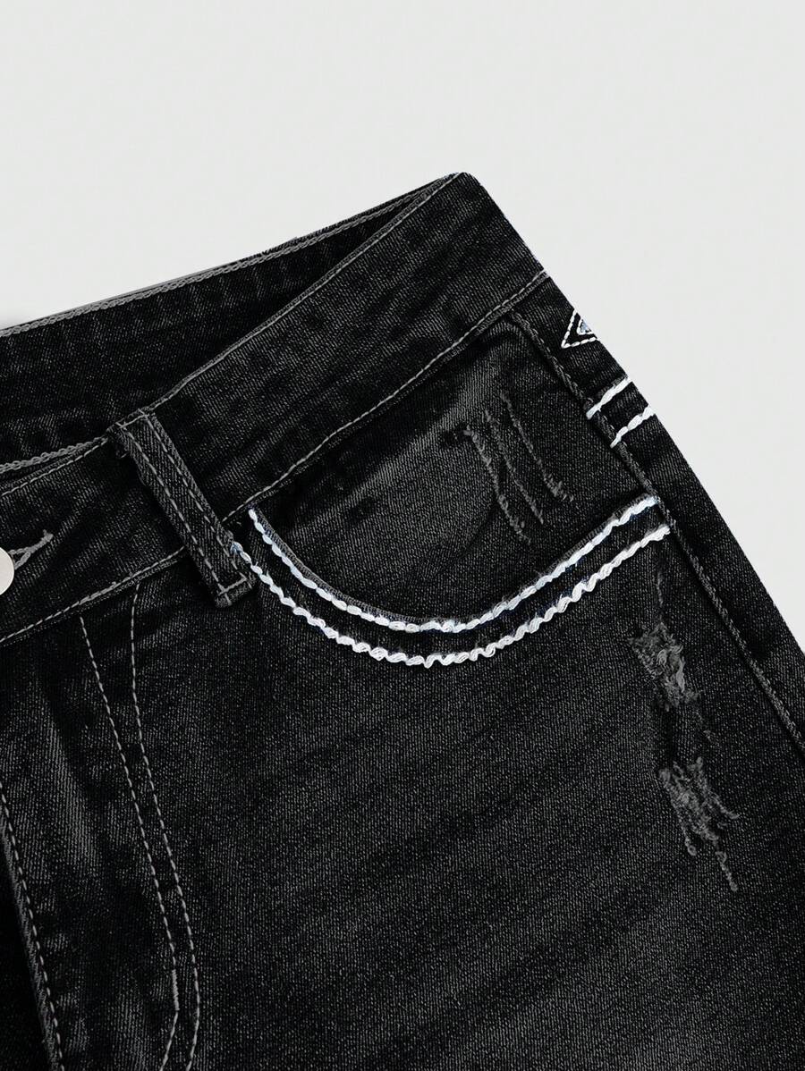 Grunge Punk Jeans slim taille basse à jambe évasée avec broderie d'ailes croisées de poche rétro Y2K pour femmes