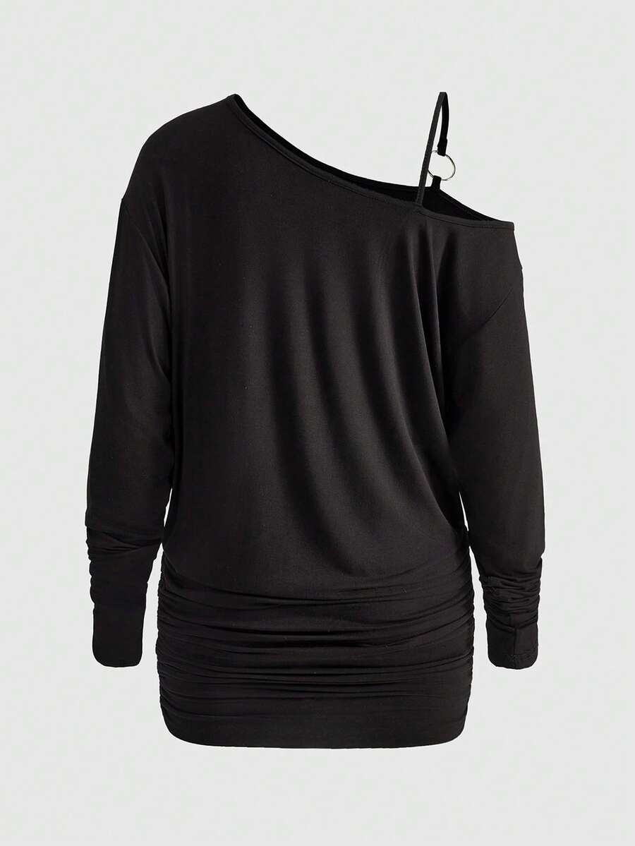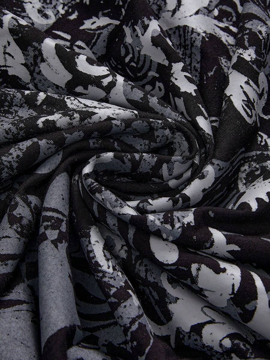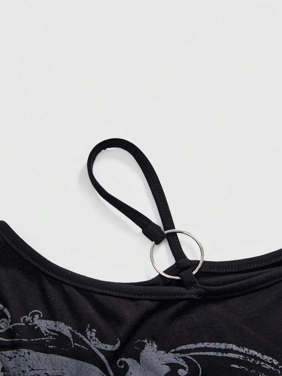 Grunge Punk Robe mini élastique froncée à imprimé croisé de vignes violettes avec épaule asymétrique sexy pour femmes, style Y2K