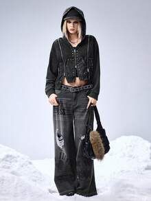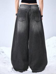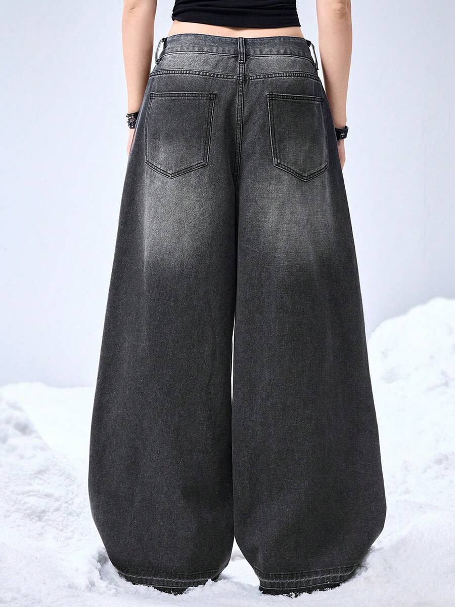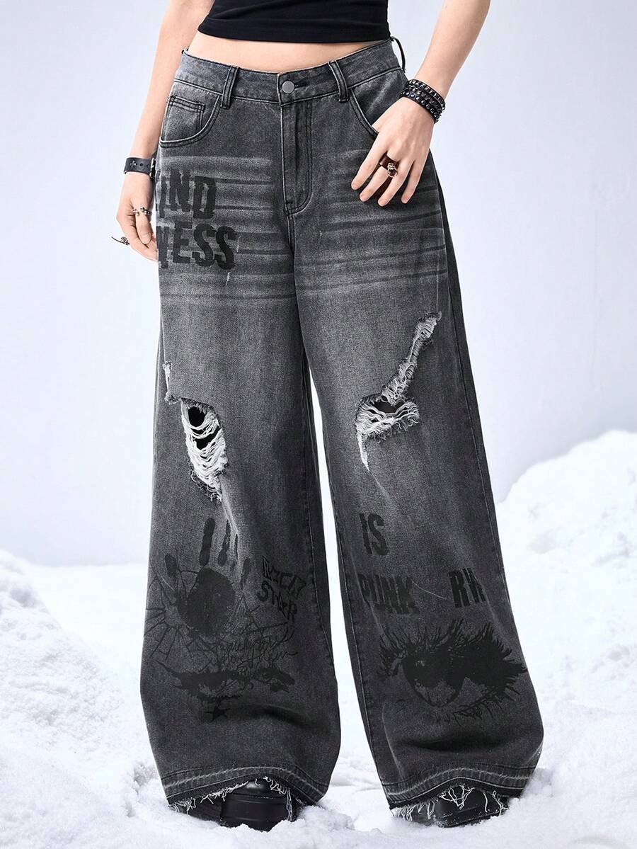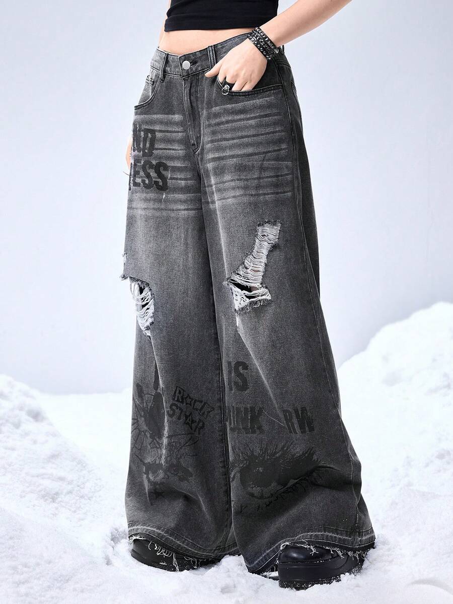 Grunge Punk Jeans à jambes larges surdimensionnés avec imprimé de main de graffiti œil et étoile, style streetwear punk Y2K pour femmes