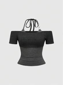 Grunge Punk Style Y2K Hauts modernes et sexy avec sangle attachée pour femmes, 2 pièces/set, école