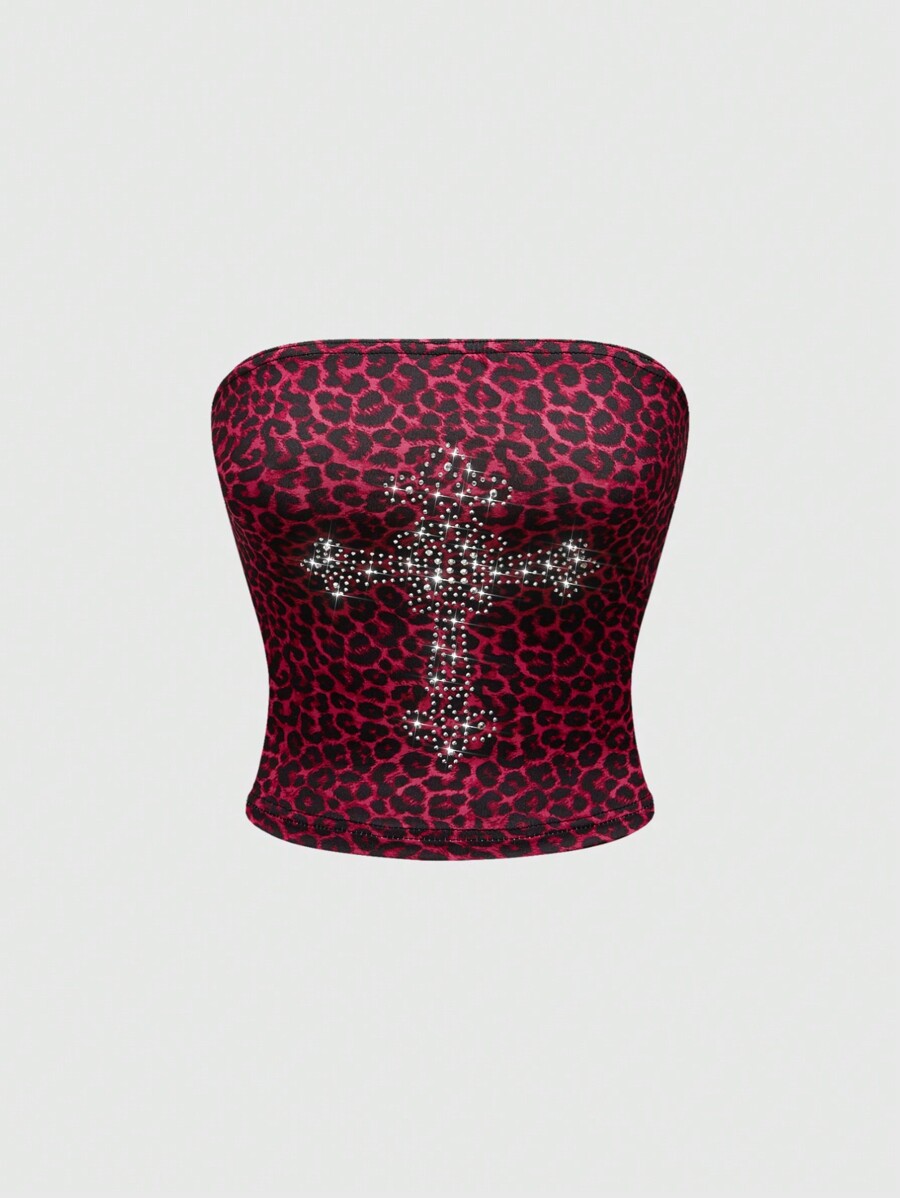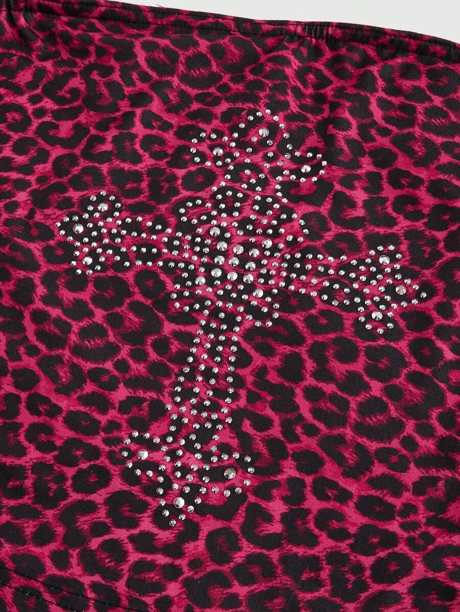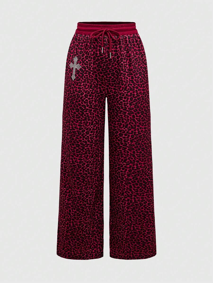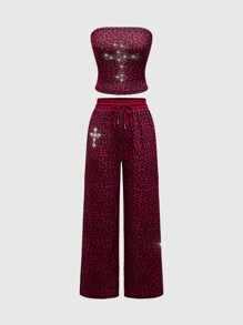 Grunge Punk Ensemble 2 pièces de débardeur court sexy imprimé léopard et pantalon évasé avec nœud papillon pour femmes, Y2K