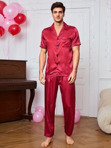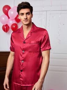 Homme Haut de pyjama en satin & Pantalon à domicile