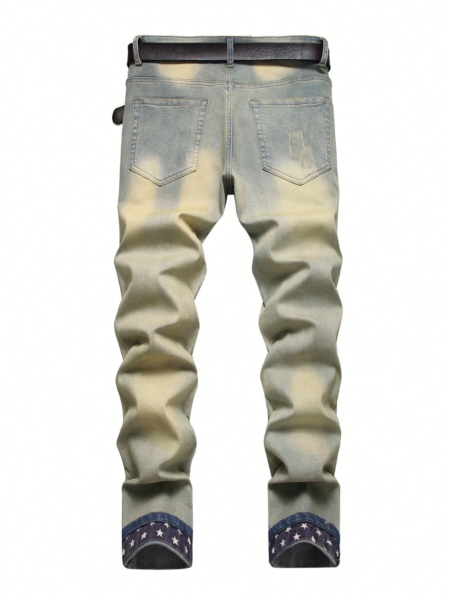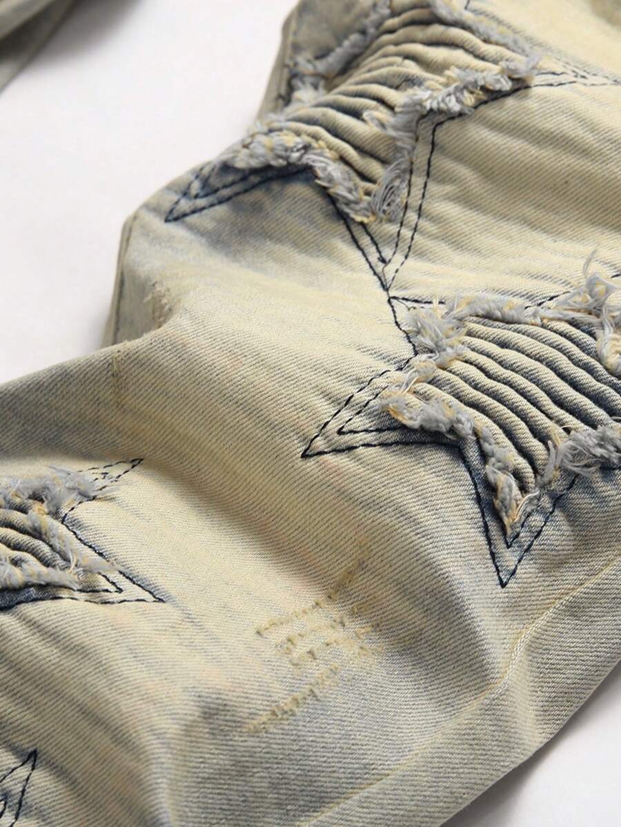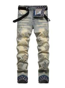 Jeans sans ceinture pour hommes avec broderie d'ailes et lavage au javel