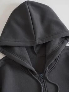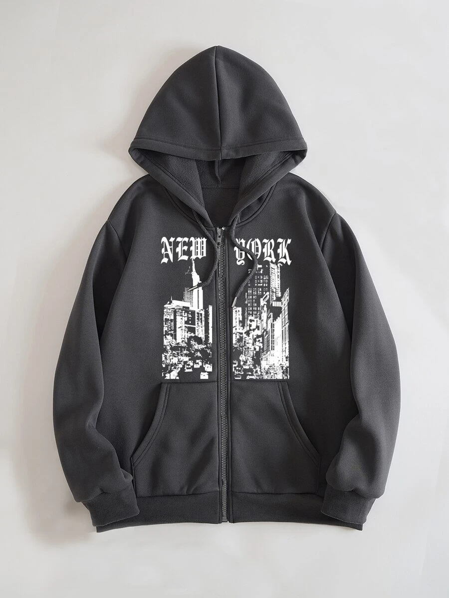 Homme Sweat-shirt à capuche bâtiment & à lettres zippé à doublure thermique