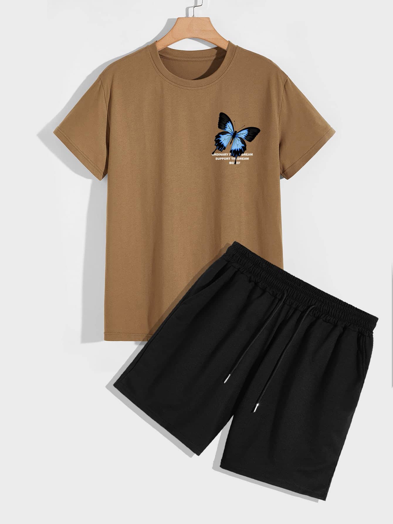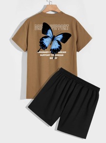 Ensemble short et t-shirt à motif de papillon et de slogan