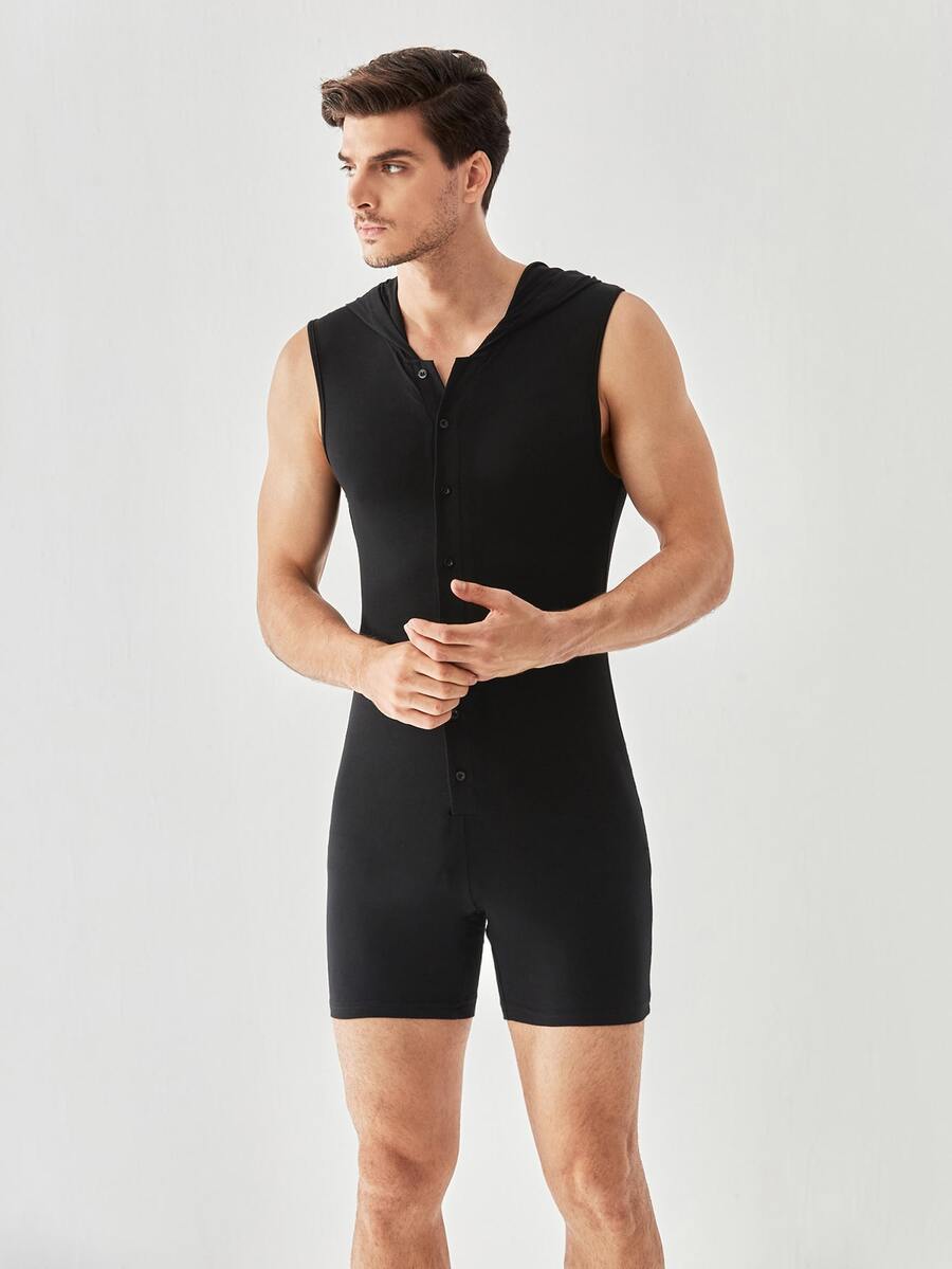 Homme Combishort de nuit à bouton à capuche