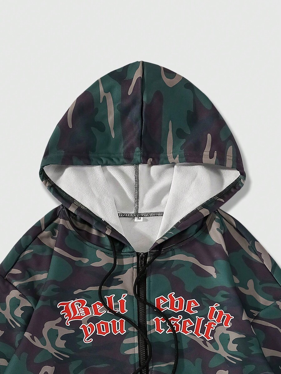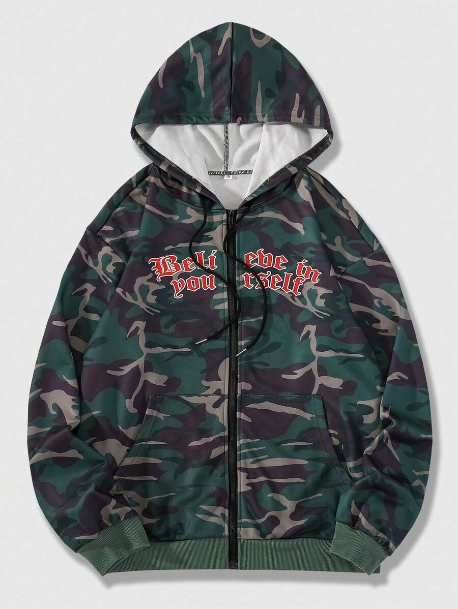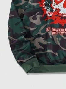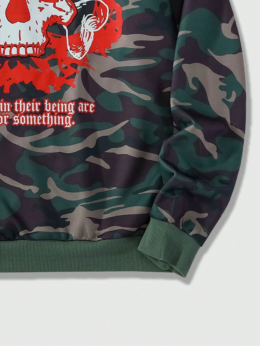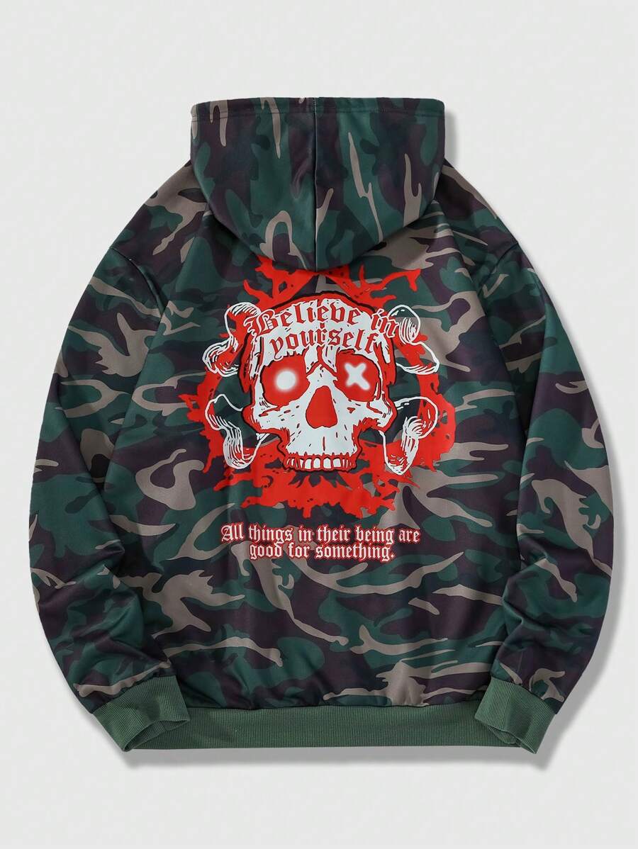 Street Life Hommes Camo Slogan & Sweater À Capuche À Cordon De Serrage À Poche Kangourou Imprimé Crâne