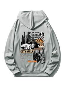 Street Life Sweat-shirt À Capuche Graphique Avec Cordon De Serrage Pour Hommes - Voiture Et Slogan