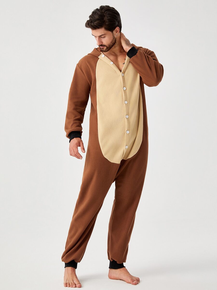 Homme Combinaison de sommeil à broderie design oreille 3D à capuche