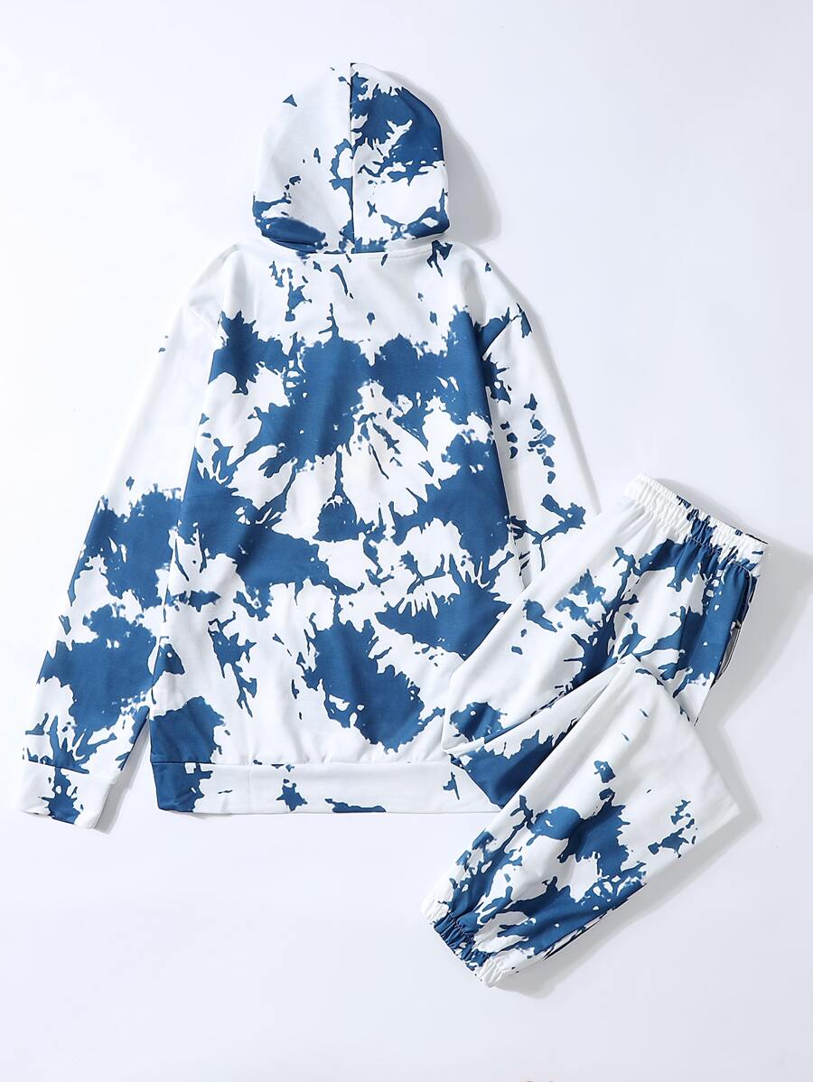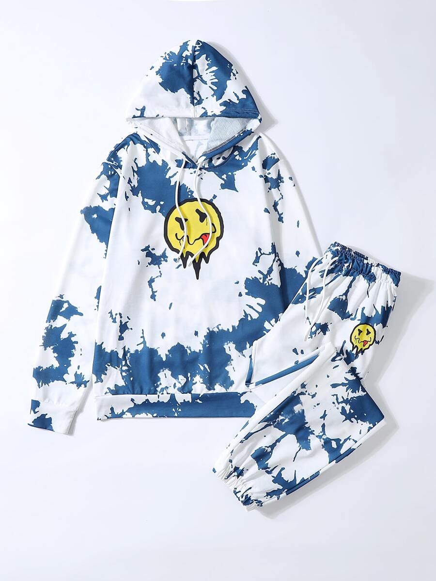 Homme Sweat-shirt à capuche à imprimé visage dessin animé et encre d'éclaboussure à cordon & Pantalon de survêtement