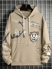 Sweat À Capuche Avec Cordon De Serrage Imprimé Dessin Animé Et Slogan Coupe Ample Pour Hommes