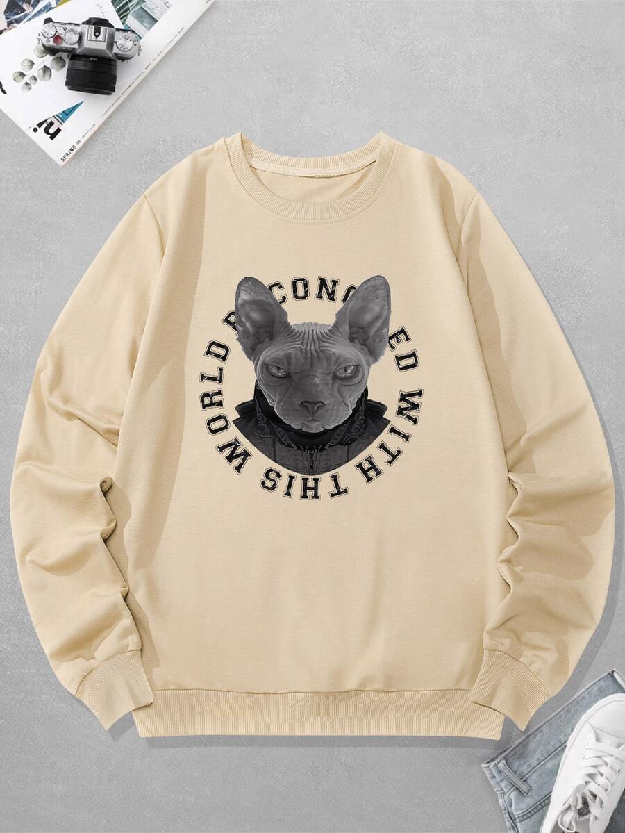 Homme Sweat-shirt chat et slogan